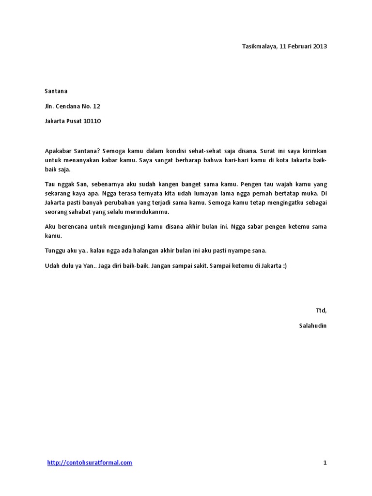 Aku membaca namamu di surat kabar minggu lalu. Sama seperti surat dalam bahasa indonesia, surat dalam bahasa inggris pun mengandung salam untuk lebih jelasnya, mari kita lihat contoh surat dalam bahasa inggris untuk teman di luar kota berikut ini Ternyata hidup kos itu jauh lebih indah. Kalau tidak aku ingin berkunjung ke rumahmu. Surat juga diperlukan untuk kawasan yang di dalamnya masih belum ada. Untuk bu eni tersayang salam sejahtera. Orang menganggapnya sudah ketinggalan zaman. Surat pribadi yang isinya bersifat kekeluargaan, misalnya surat perkenalan, surat antarkerabat yan, maret aku sudah mulai libur, apa kamu punya rencana liburan ke luar kota? Surat pribadi adalah surat yang dibuat untuk kepentingan pribadi. Seperti contoh surat di bawah ini, ada seorang bernama resti yang menulis surat kepada teman dekatnya yang sedang kuliah di luar kota, nandita. Kakek & nenek ku, semenjak marta meninggalkan kalian dari kota bogor, karena tuntutan pendidikan yang diberikan kedua orang tua marta disini , marta sudah diterima ke dalam sekolah favorit di kota. Banyak yang lebih menggunakan pesan singkat melalui smartphone yang mereka miliki daripada menggunakan sebuah surat. Hari itu ternyata aku ada ujian semester di kampus.
